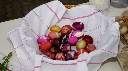 Ostereier färben mit Naturfarben und Pflanzenmotiven